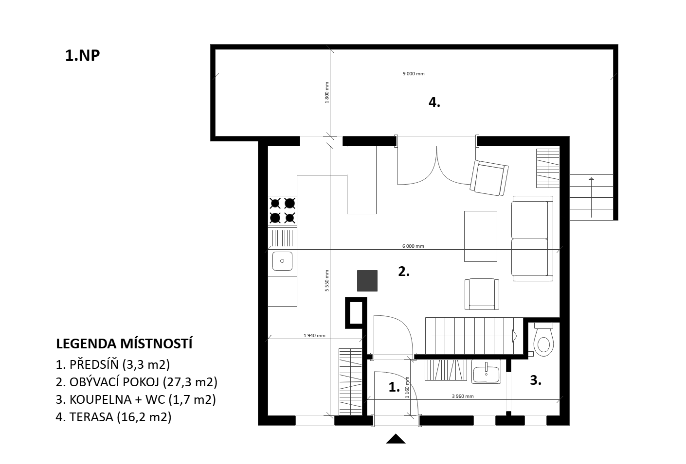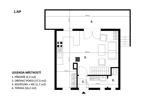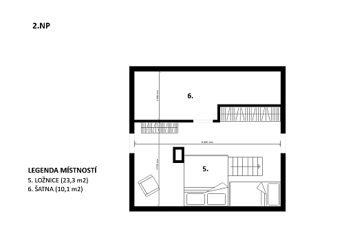 Pro získání více místností a prostoru na spaní se nabízí v přízemí vedle kuchyně vybudovat další pokoj pomocí příčky. Dále je možné v patře zrušit šatnu a rozdělit prostor na dvě ložnice.