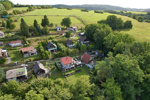 Chata se nachází v chatové osadě Hruškov u Stříbrné Skalice.