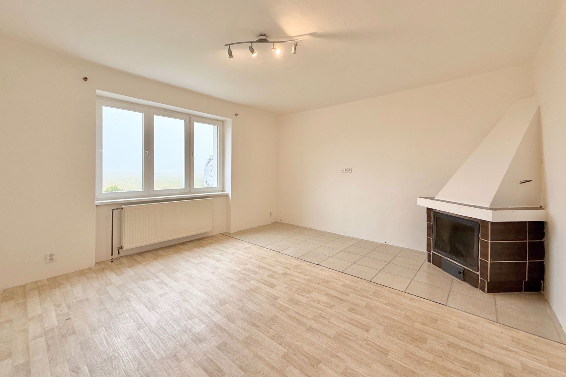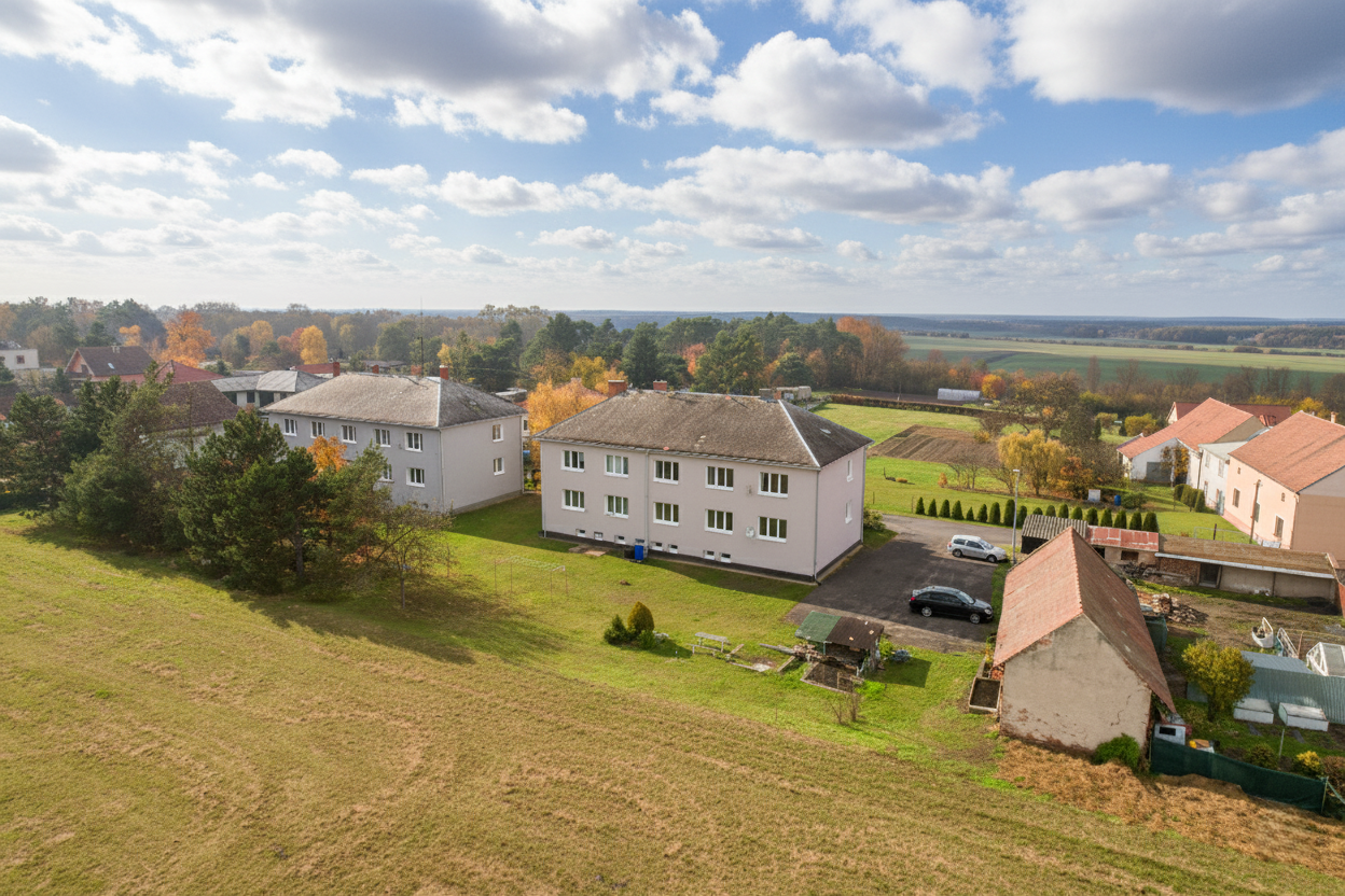 Družstevní byt o dispozici 3+1 a podlahové ploše 77 m² se nachází ve zvýšeném přízemí (1. NP) bytového domu v obci Dušníky, jen pár minut od Roudnice nad Labem. K bytu patří i zahrádka za domem a tři sklepní prostory o celkové výměře 26 m².