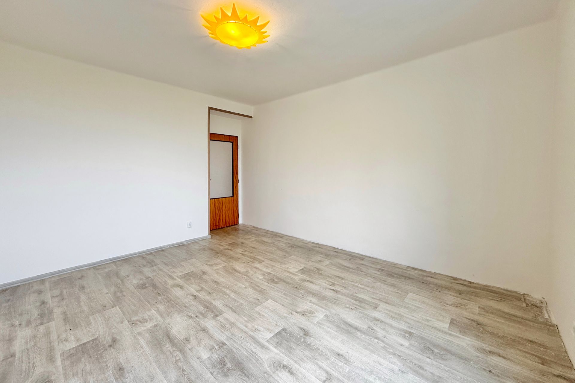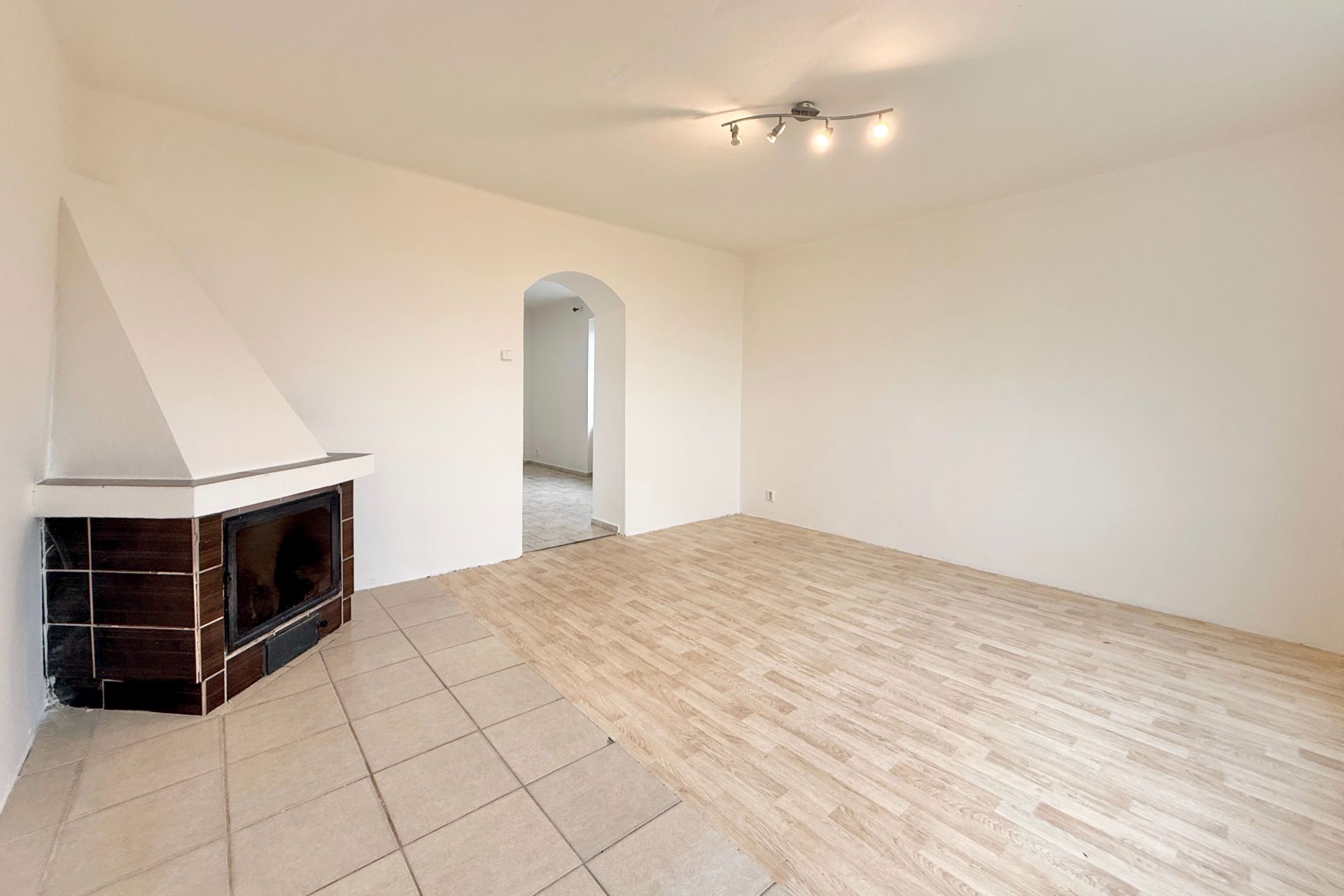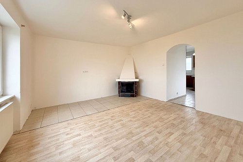 Byt tvoří vstupní chodba, prostorná kuchyně (20,4 m²) navazuje na obývací pokoj s krbem (19,1 m²). V bytě jsou dále dvě ložnice (9,9 m² a 15,6 m²) s přístupem z chodby, dále koupelna a samostatné WC. Obývací pokoj a obě ložnice jsou orientovány okny na jih. Byt je v dobrém technickém stavu a ihned obyvatelný, přesto vybízí k drobným rekonstrukcím (např. výměna podlah nebo kuchyně).