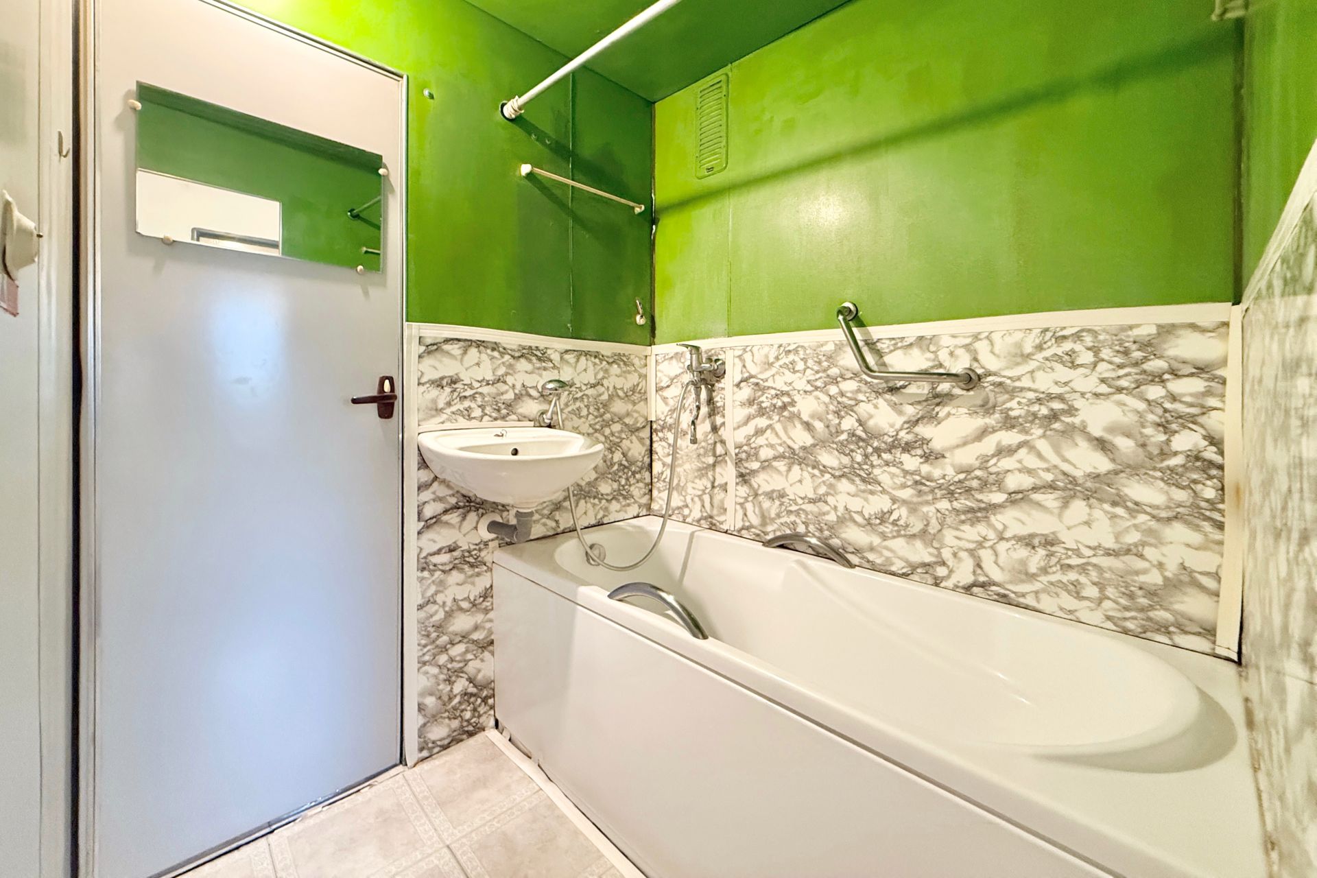 Byt je kompletně před rekonstrukcí a tomu odpovídají původní materiály a koncepce. Bytové jádro je umakartové. Stejně tak většina příček v bytě je z desek na bázi dřeva. Na podlaze je položen koberec, nebo vinyl. Rozvody elektřiny jsou původní v hliníku. V každé obytné místnosti jsou litinové radiátory. Do bytu je zaveden plyn pro sporák. Samotný dům je zateplený a s vyměněnými plastovými okny. Vytápění je pomocí dálkového teplovodu.