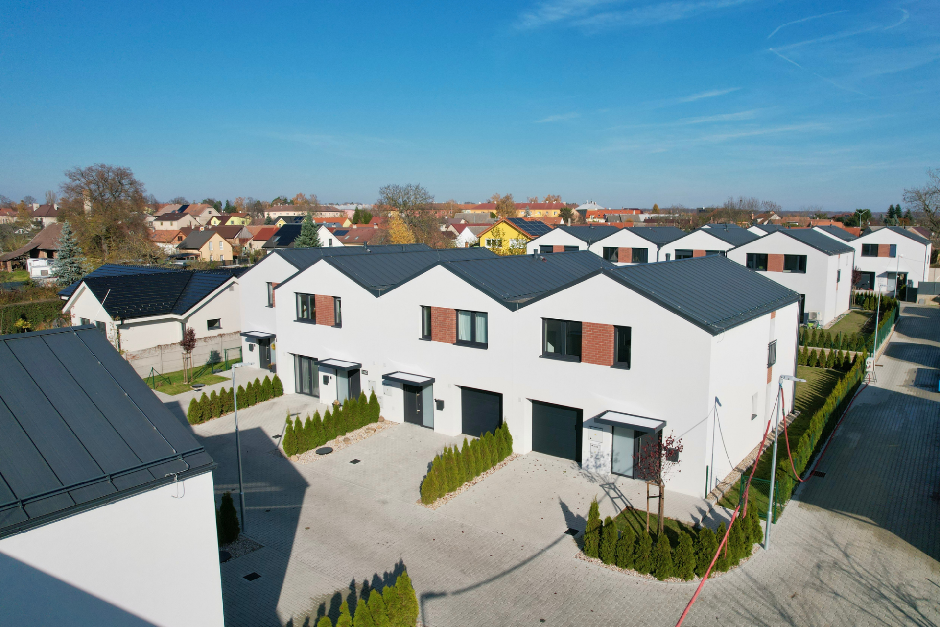 Projekt byl realizován s důrazem na vysokou kvalitu provedení, minimalizaci provozních nákladů a dlouhodobou životnost. Dům je postaven z cihlového zdiva s kontaktním zateplovacím systémem. Kvalitní okna s izolačním trojsklem, podlahové vytápění a tepelné čerpadlo dále přispívají k energetické úspornosti. Sedlová střecha je tvořena dřevěným krovem a plechovou krytinou v antracitové barvě. Interiér je dokončen vinylovými podlahami, kvalitními interiérovými dveřmi a kompletně vybavenými koupelnami.