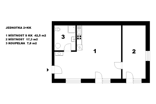 • Tři samostatné vstupy – Vstup je možný jedním vchodem ze společných prostor domu a dvěma přímo z ulice.