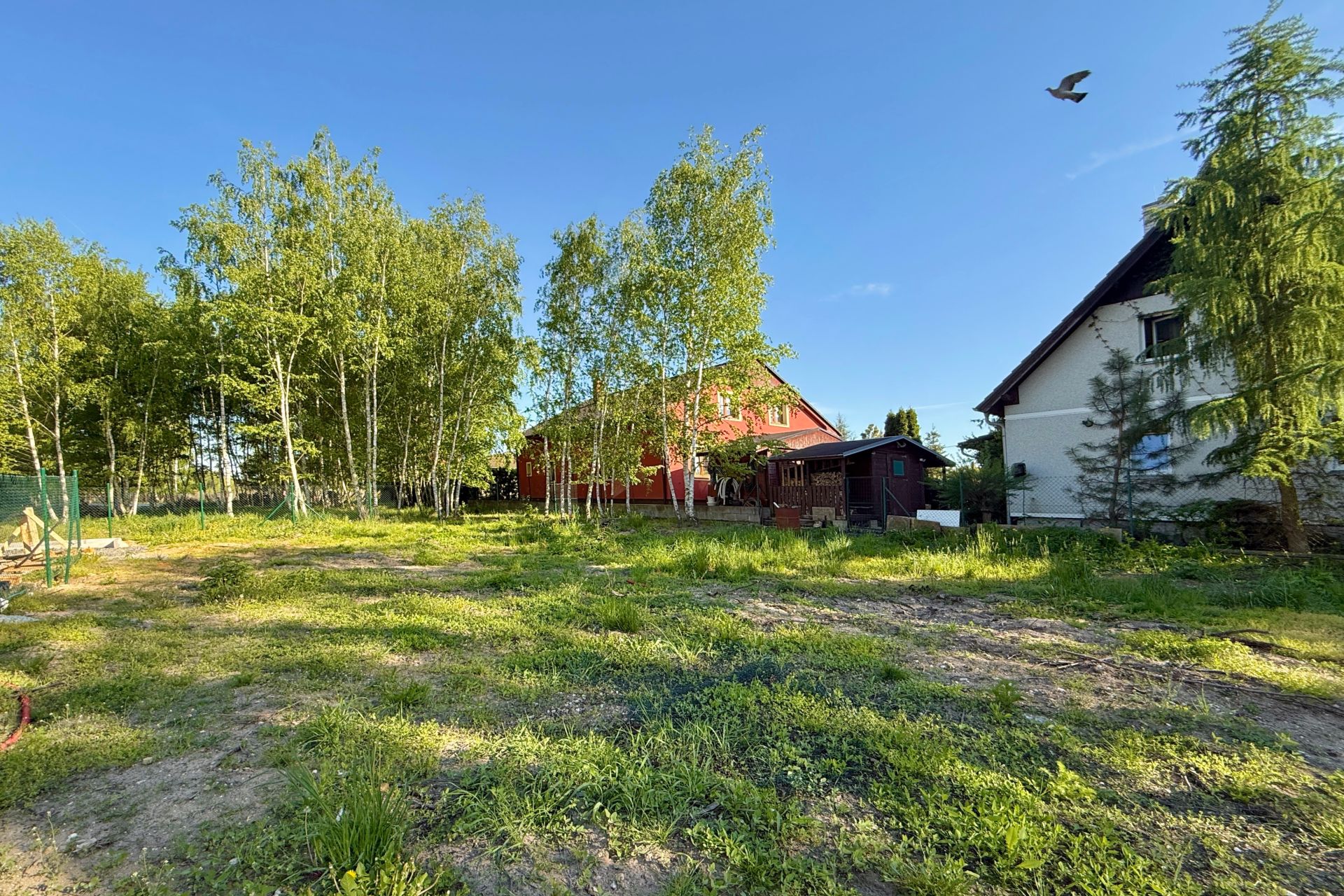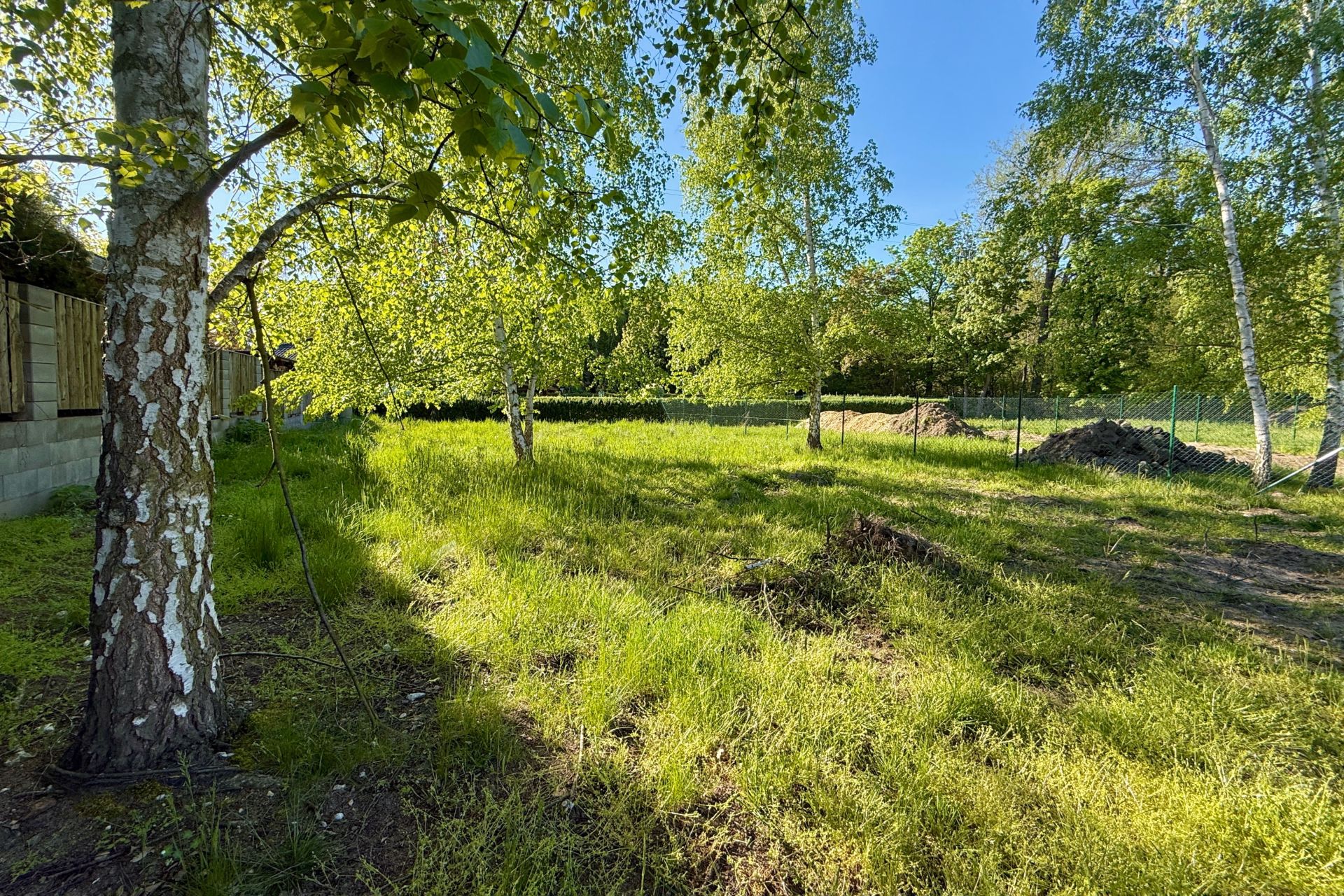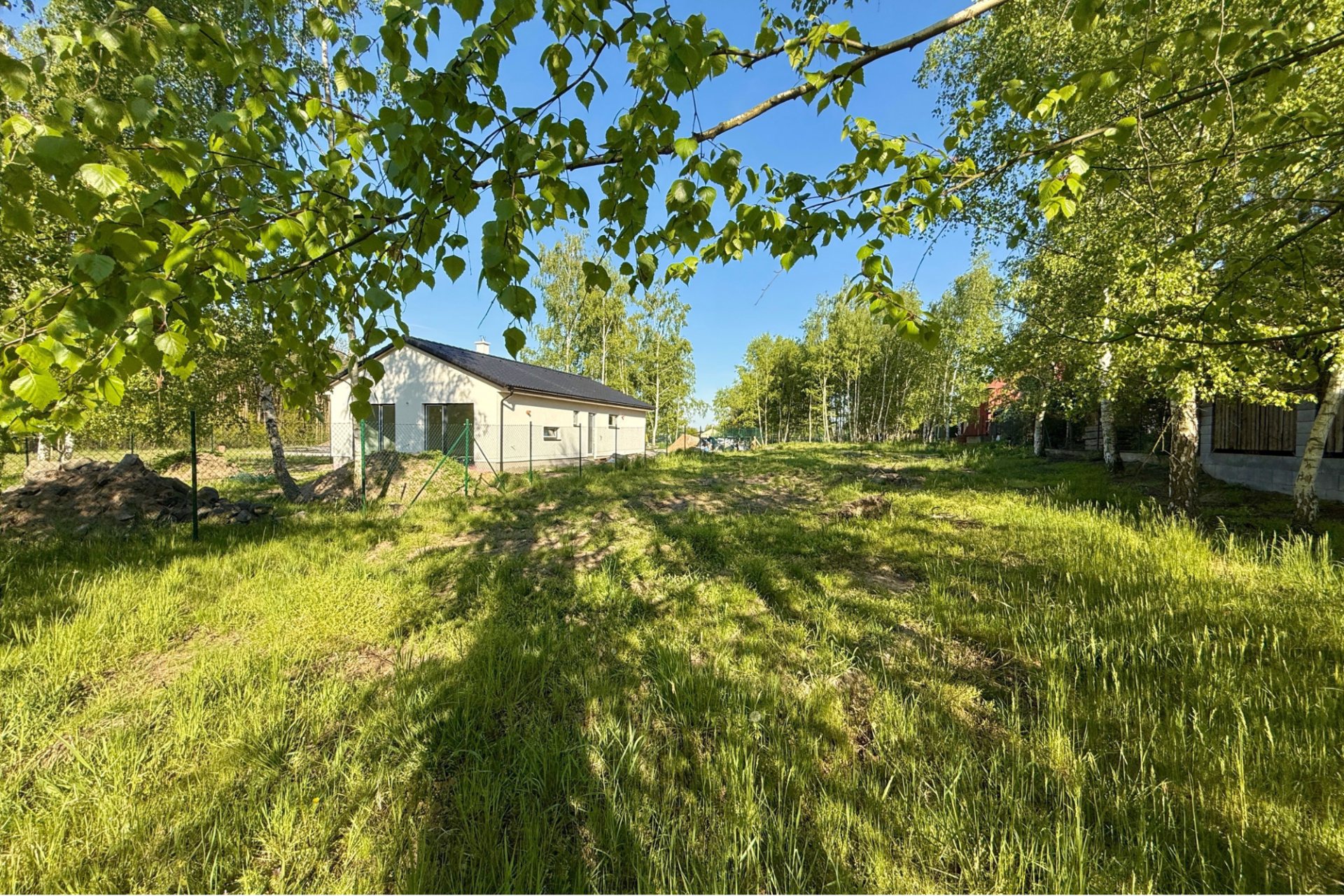 Pozemek má rozměry 15,5 m × 67 m (průměrné hodnoty), je kompletně rovinný a ze všech stran oplocený. Ze tří stran pozemek sousedí s rodinnými domy, z kratší strany sousedí se zalesněnou částí sousedního pozemku. K dispozici jsou přípojky vody, elektřiny a kanalizace.