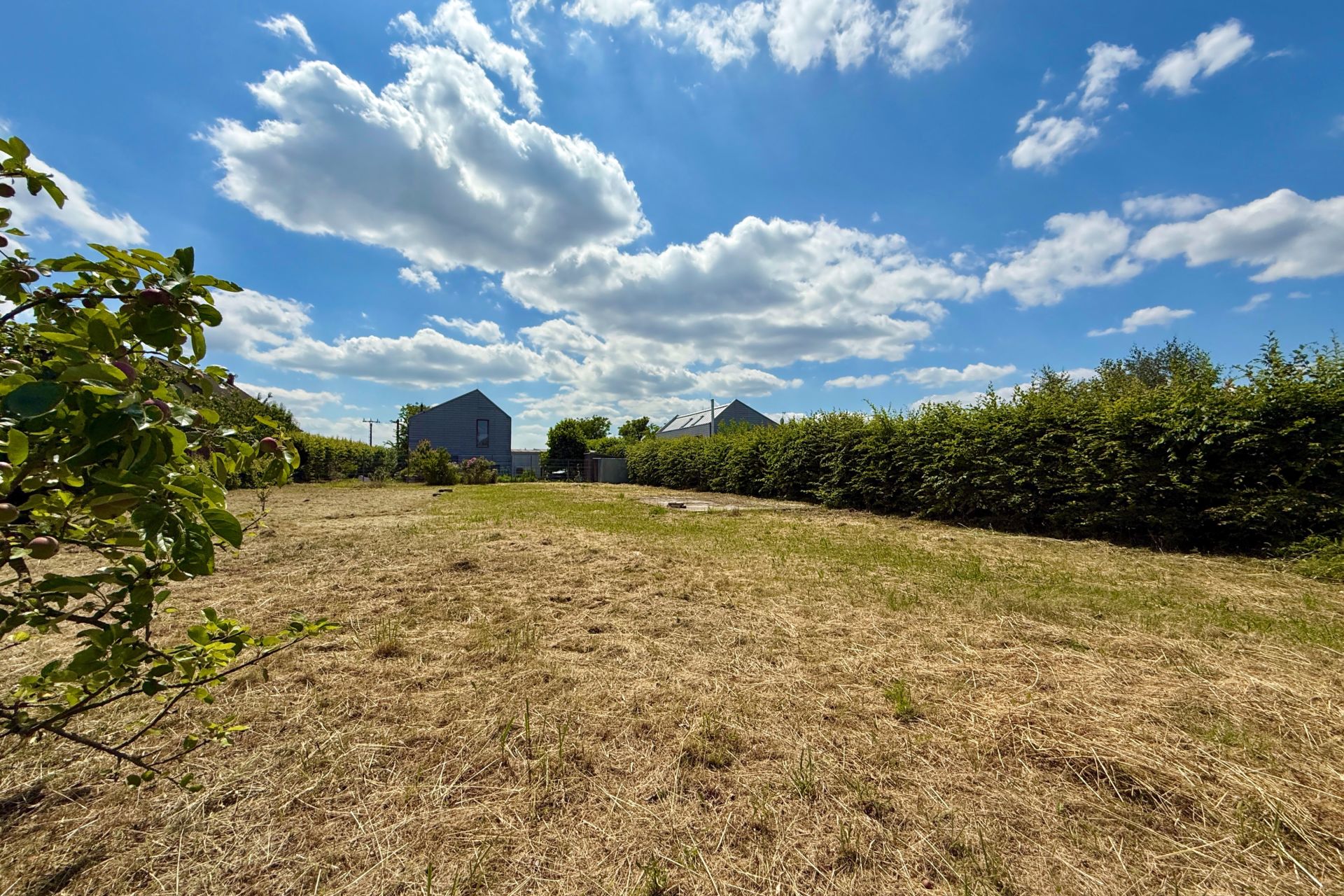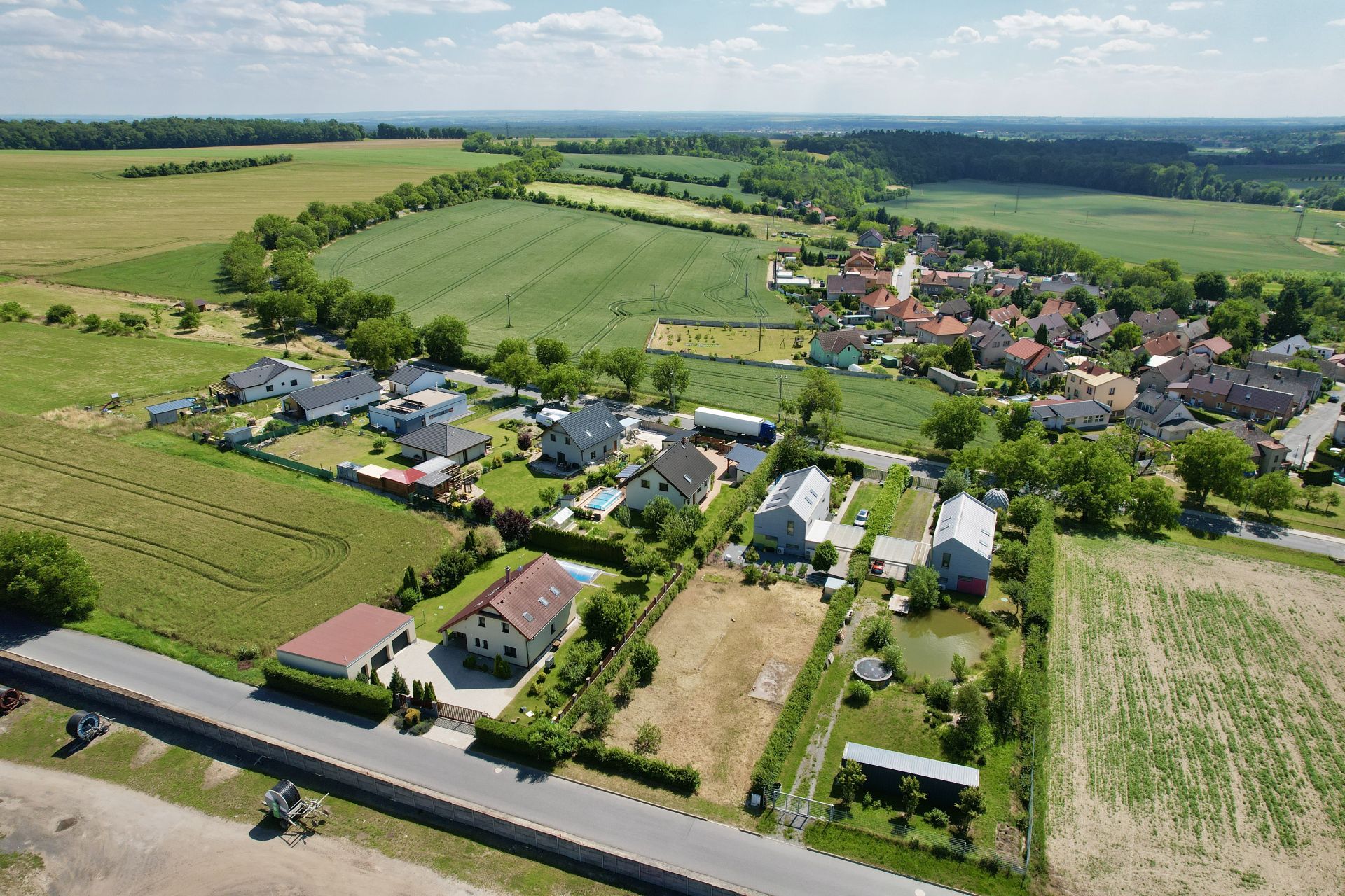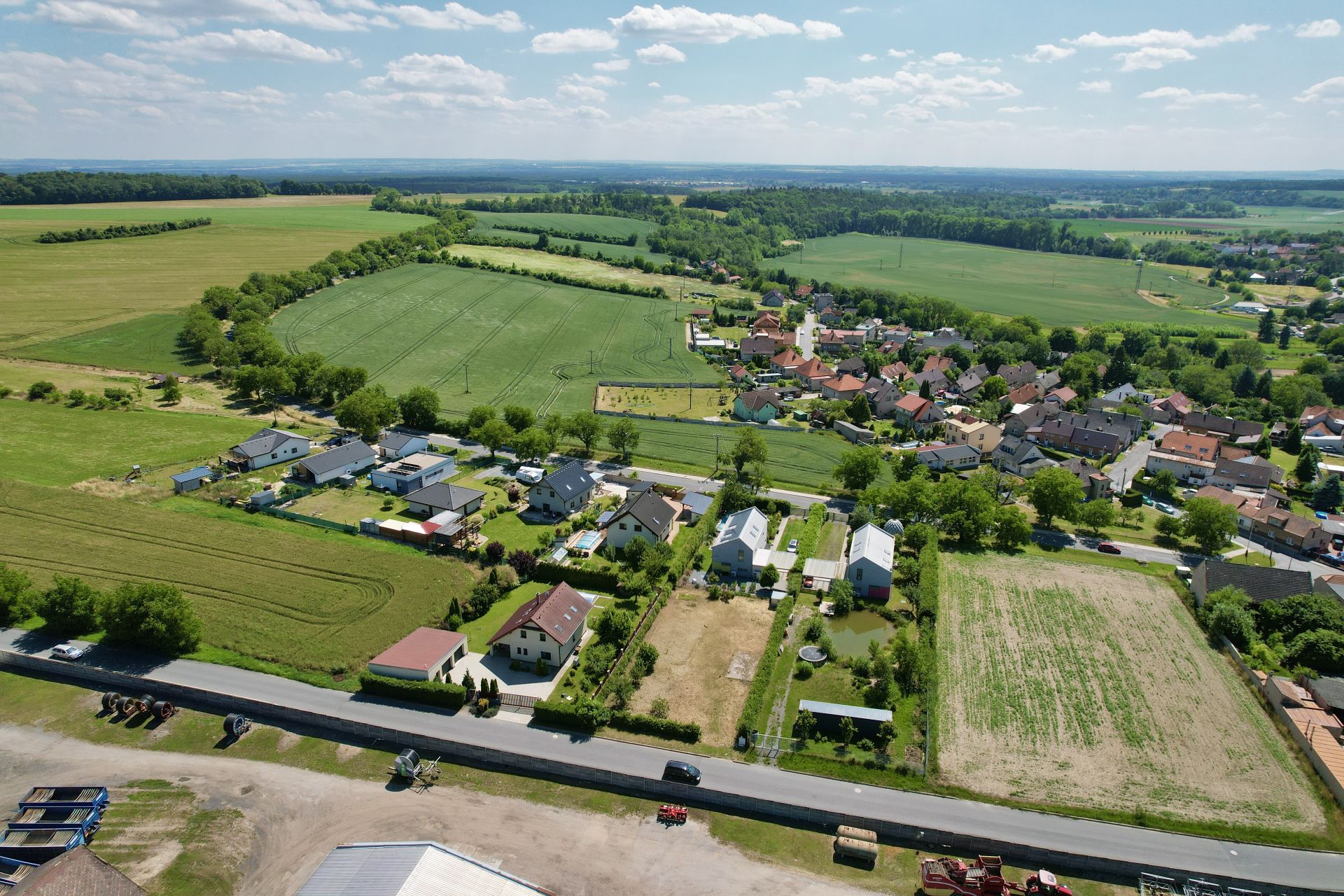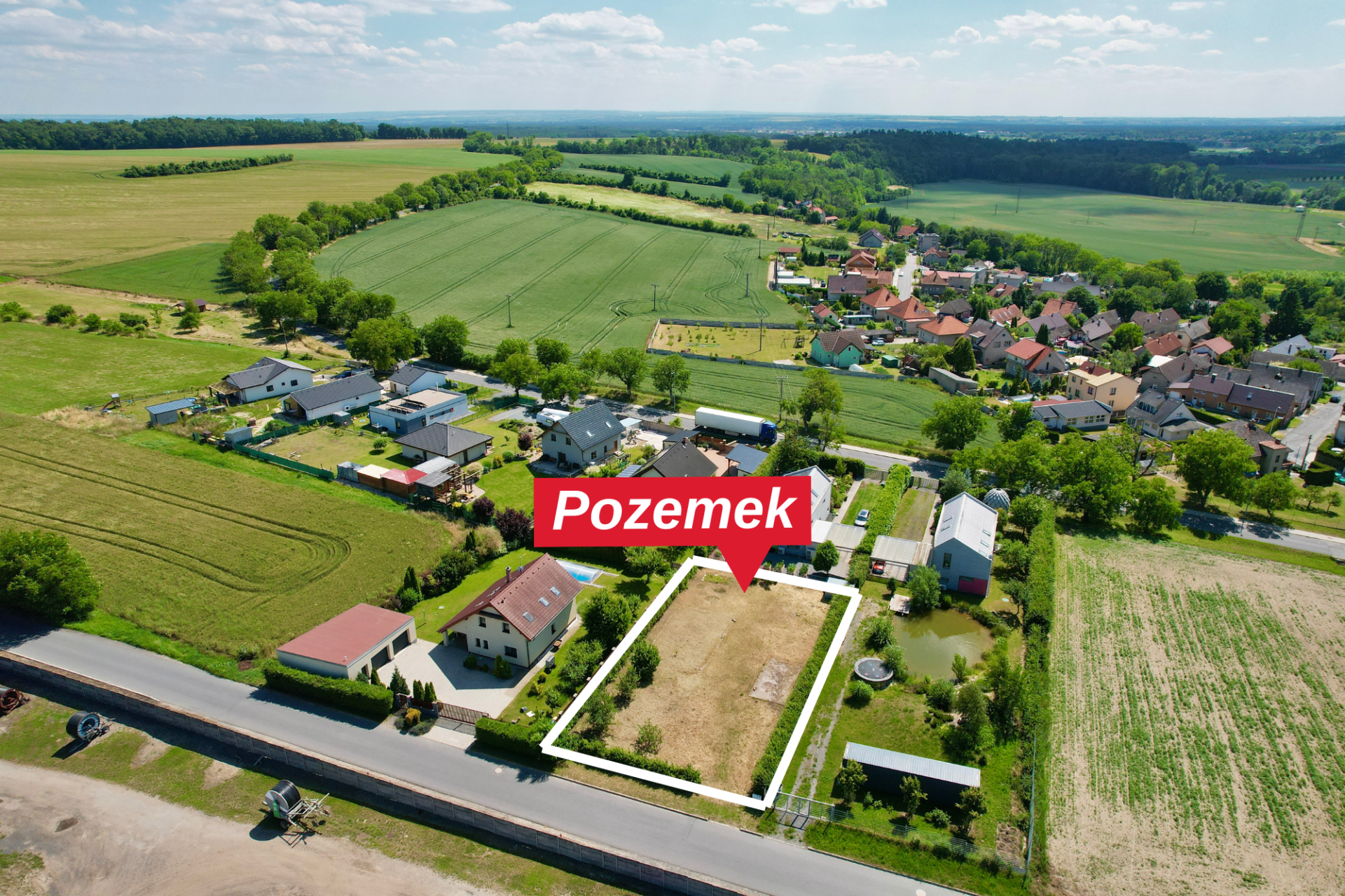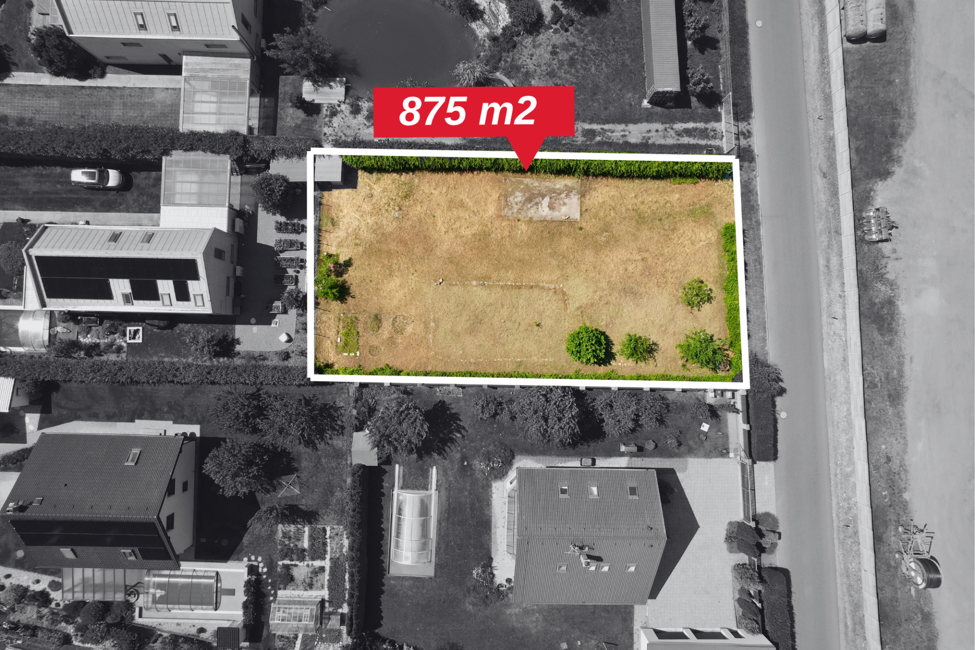 Pozemek má celkovou výměru 875 m² a půdorysné rozměry přibližně 22 × 40 metrů. Nachází se na rovinatém terénu, je oplocený ze tří stran a lemovaný vzrostlými habry. Na pozemku se nachází několik menších ovocných stromů. Na dvou sousedních pozemcích jsou rodinné domy, jeden sousední pozemek je momentálně nevyužívaný. Naproti přes silnici se nachází areál zpracovatele brambor, který nezatěžuje okolí hlukem ani prachem.