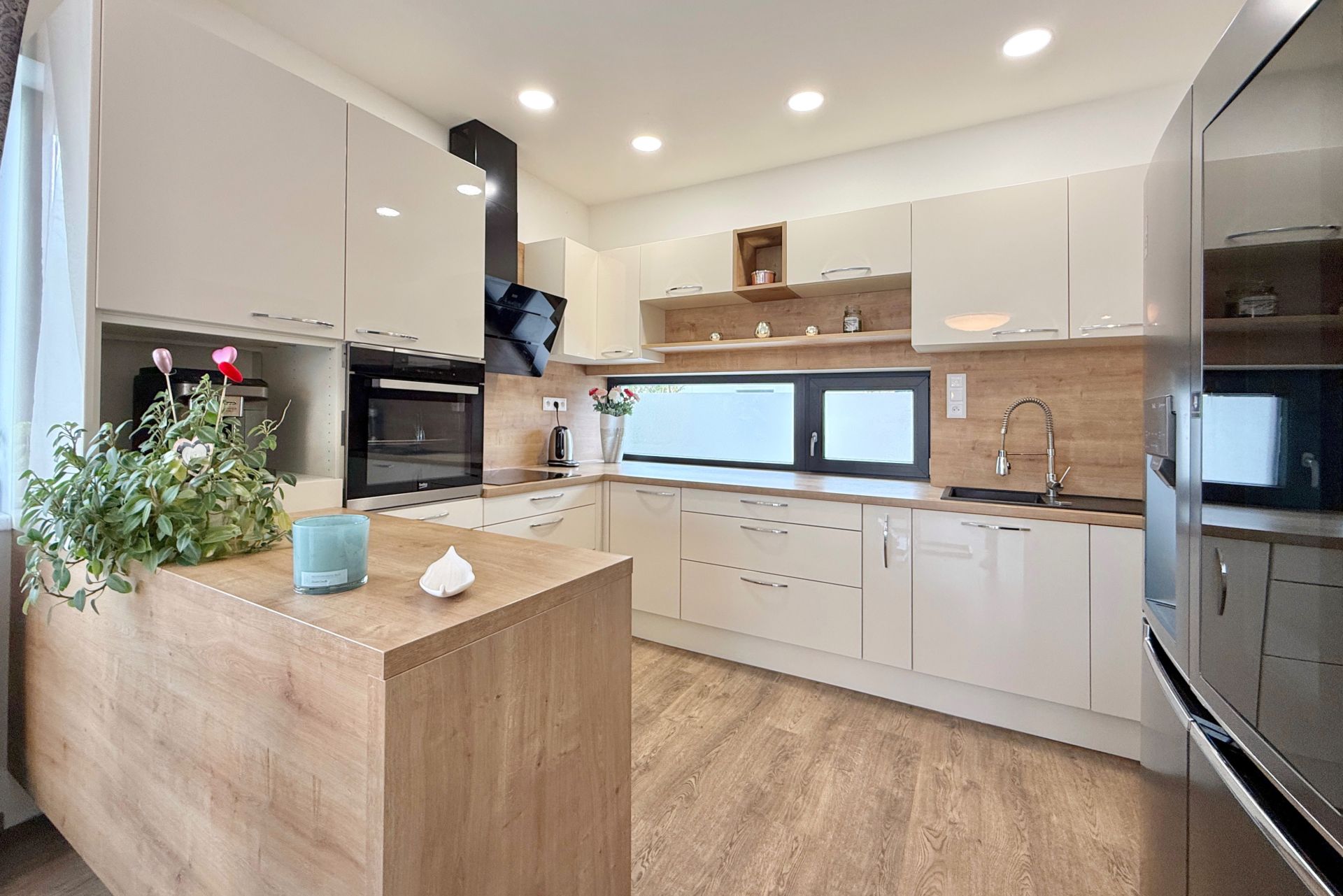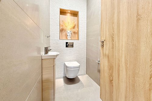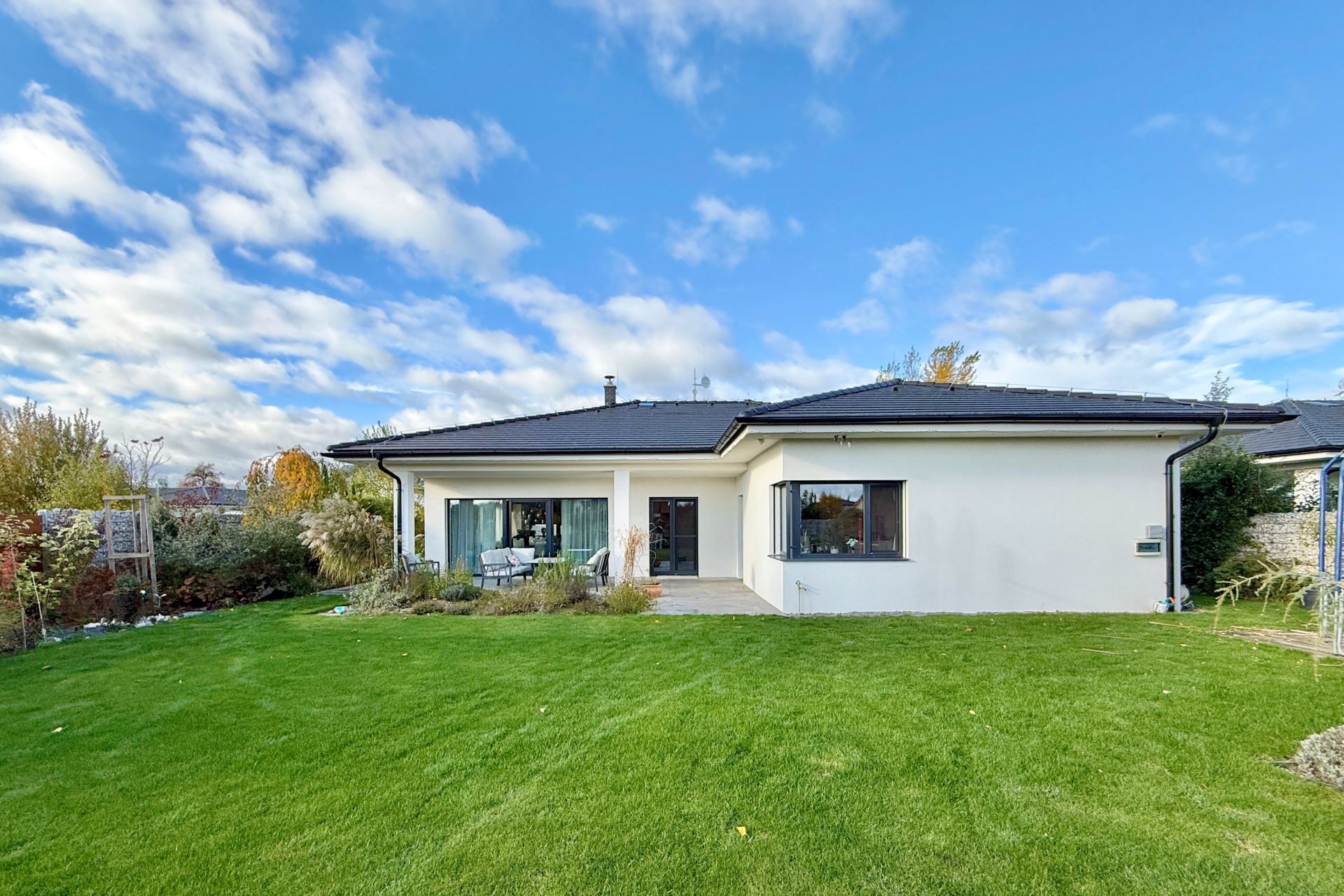 Dům je napojen na všechny inženýrské sítě – tlakovou kanalizaci, obecní vodovod a plyn. Kamerový zabezpečovací systém zvyšuje pocit jistoty a ochrany majetku.