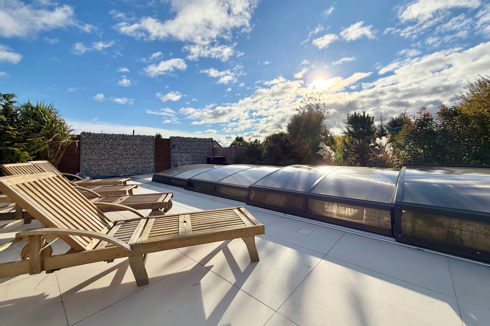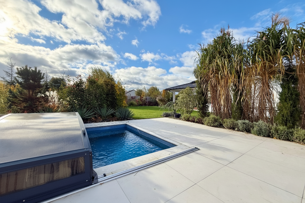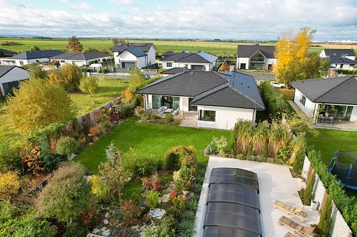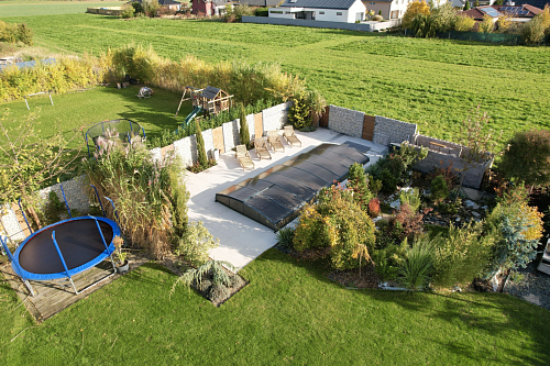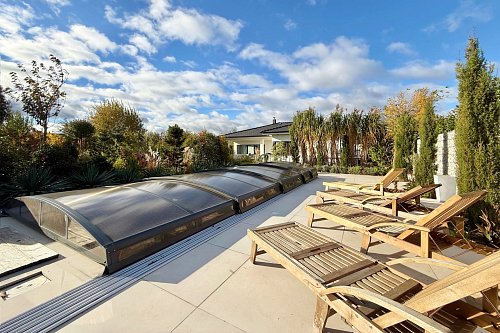 Na zahradě se nachází bazén o rozměrech 8 × 4 metry a hloubce 1,4 metru. Je vybaven posuvným krytím, protiproudem, tepelným čerpadlem a technologií slané vody.