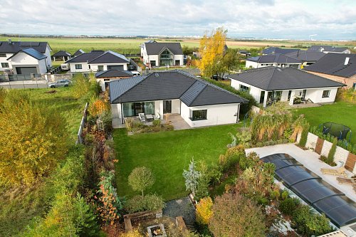 Novostavba přízemního rodinného domu o dispozici 5+kk a užitné ploše 225,85 m² (obytná plocha 188,12 m² + garáž 37,73 m²) stojí na pozemku o výměře 1195 m² v klidné části obce Sibřina (u Křenice), u Prahy. Nabízí nadstandardní komfort, soukromí a výborné napojení na metropoli.,
